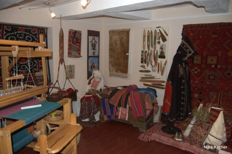Privat geführtes Weberei-Museum mit alten Webstühlen, Webrahmen Teppichen und anderen Textilen aus aller Welt.